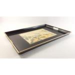 A lacquer wooden tray with applied paper centre. 54cm x 38cm in clean condition.