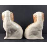 A pair of VINTAGE Staffordshire Wally Dogs with gilt leads 20cm approx