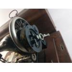 A VICKERS sewing machine in wooden carry case. Modele DeLuxe. With ornate gilding. Base measures 50cm x 27cm