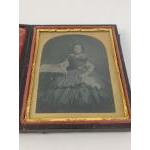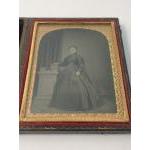 Two antique cased Victorian tin-type studio photographs of stylish ladies. Frame size 12 x 10cm approx