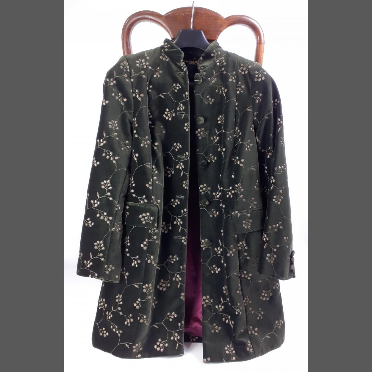 A FAVOURBROOK velvet jacket in mink colouring with gold thread stitching and embroidered buds plus mulberry coloured lining, 2 front pockets and button fastening. Size 16.