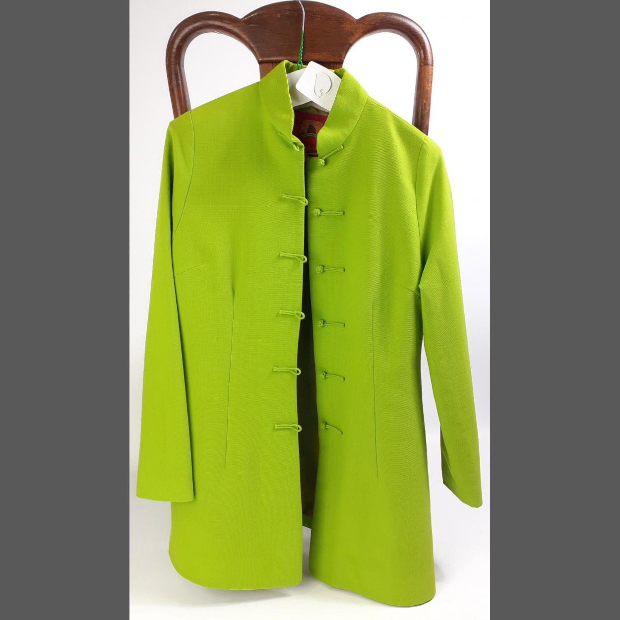 Stand out from the crowd in this stylish gorgeous lime green ladies jacket made in Hong Kong, size 14. Shell 100% wool, lining polyester and acetate
