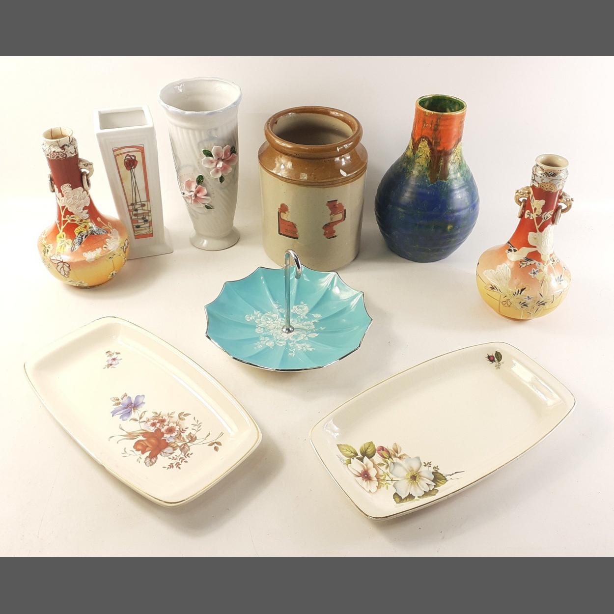 A quantity of decorative ceramic pieces to include GLENCAIRN fine porcelain vase with Rennie Mackintosh style rose (20cm tall approx) and a DELTA pottery vase 24cm tall approx