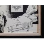 A framed 2002 Winter Olympic Games in Utah framed First Day Cover and a framed Aneurin Bevin NHS Cartoon by Furneval