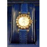FRED of PARIS ladies wrist watch with diamond encrusted bezel and interchangeable straps in original case. Sixteen nice stones. NB. New battery required and stones have case residue adhered.