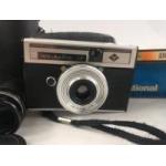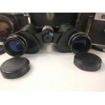A box containing a MAMIYA DSX1000 camera with fitted 1:1.8 lens and a VIVITAR 55ml lens camera and a pair of Boots binoculars 8x 30