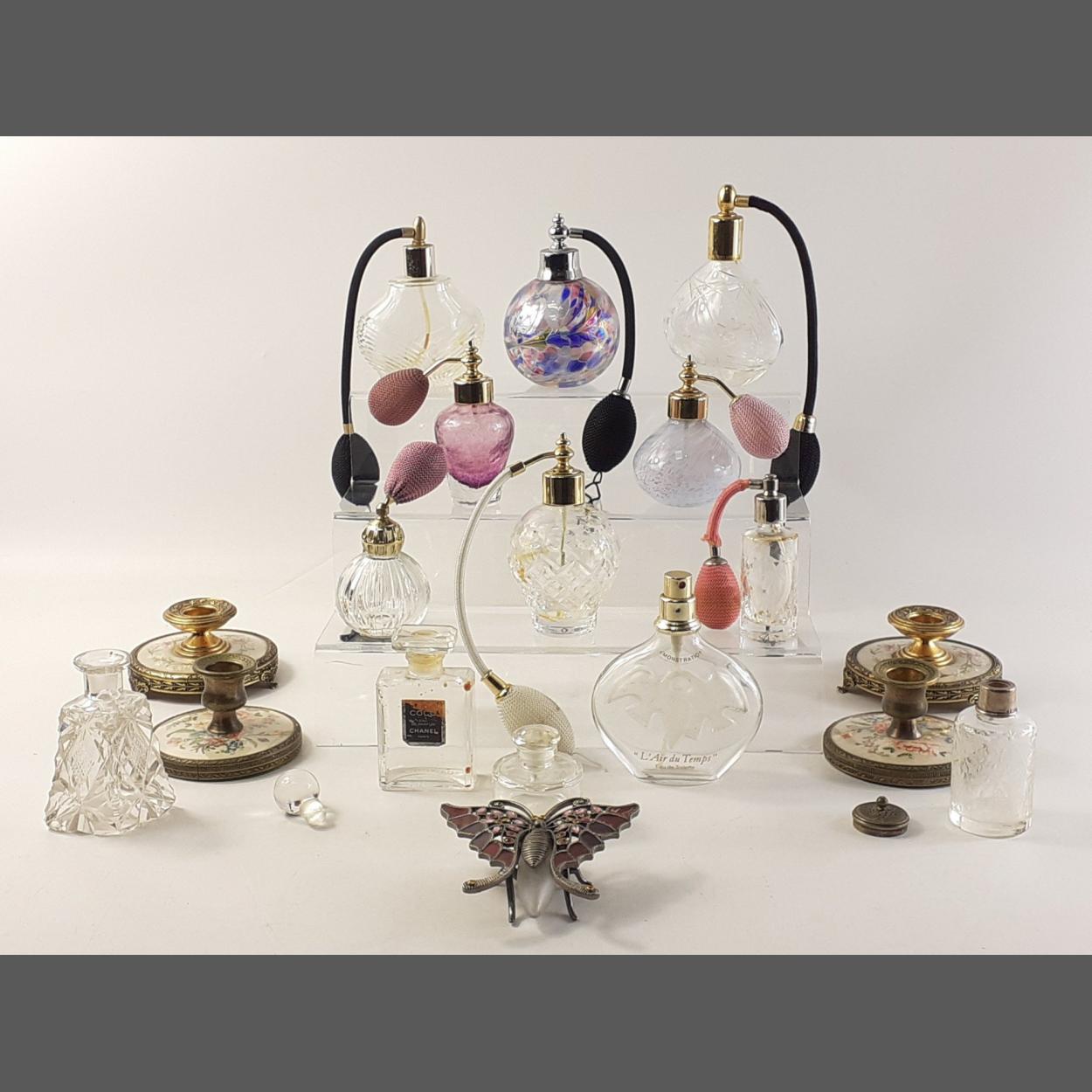 A pretty collection of atomizers including one by CAITHNESS, empty perfume bottles and others. A very nice decorative lot
