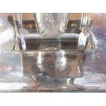 A very nice quality EP desk tray with raised pen rest and ink bottle. 16cm x 16cm approx. Note inkwell hinge broken.