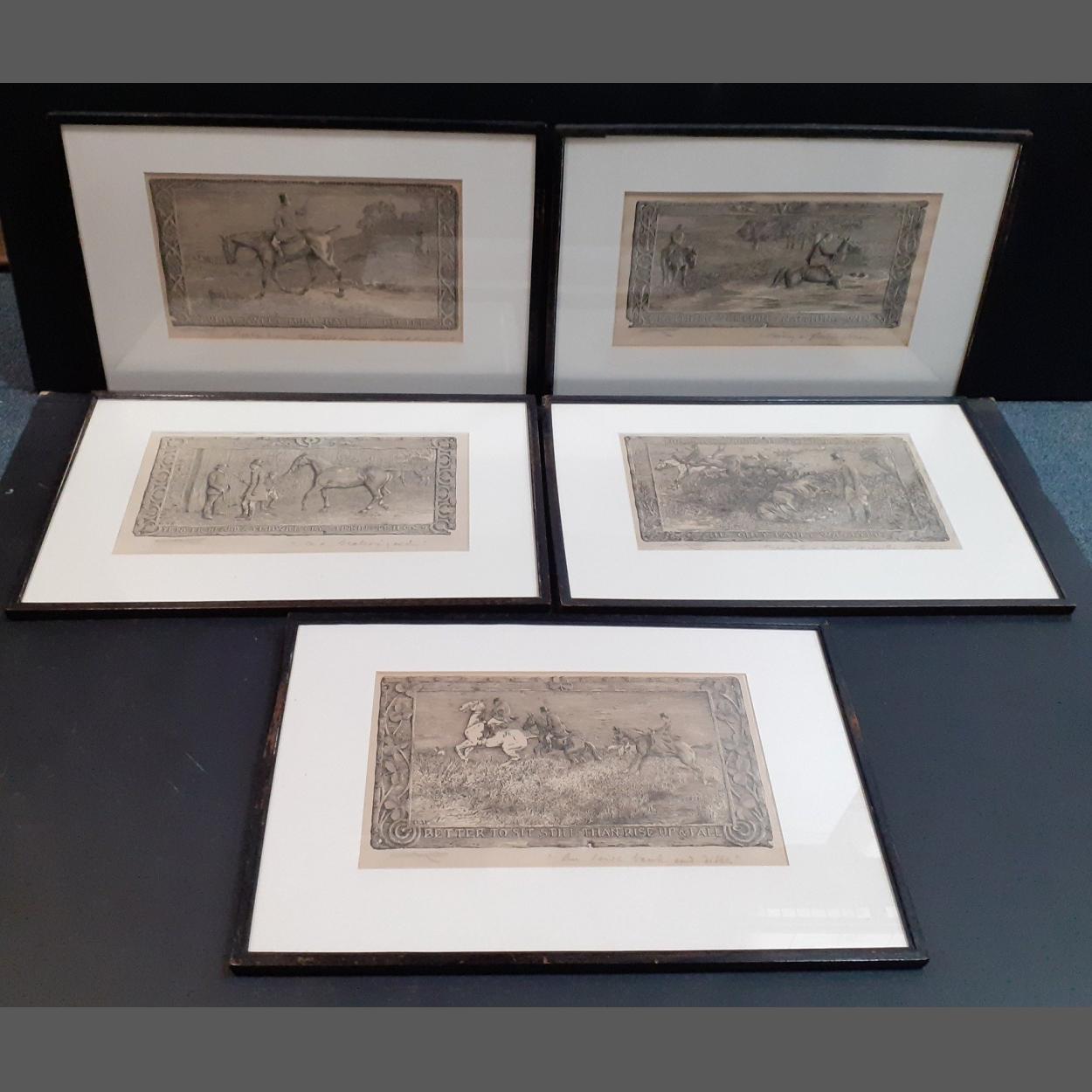Five hunting engravings frames measuring 48 x 31cm approx dating from early 1900s.