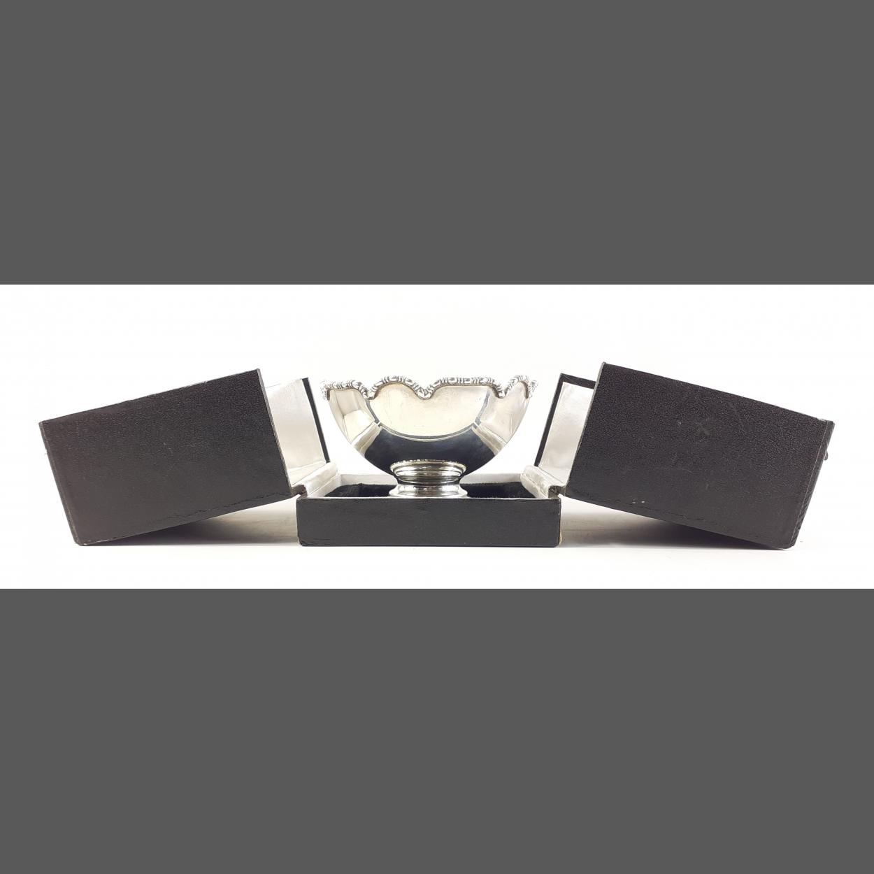 A sterling silver stamped footed bowl in lovely condition and stored within a presentation box. 8cm tall approx and 12cm in diameter. 196g approx.
