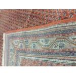 A large Persian sarouk carpet with a warm rust background with a few worn areas 305 x 210cm approx. Good quality item