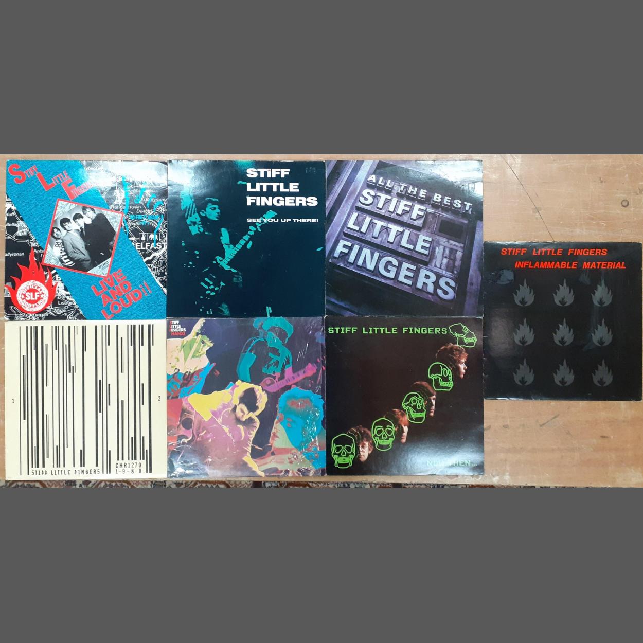 STILL LITTLE FINGERS vinyl lot of seven LPs to include See You Up There, Inflammable Material, HANX, Live and Loud, Stiff Little Fingers, All The Best, Now Then.