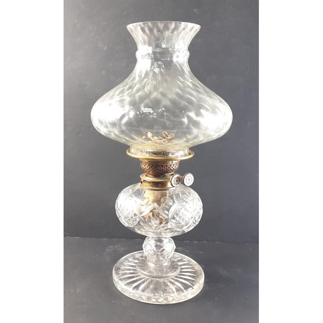 BEAUTIFUL! Squat cut glass oil lamp with shade, unbranded. Height with shade: 45cm approx
