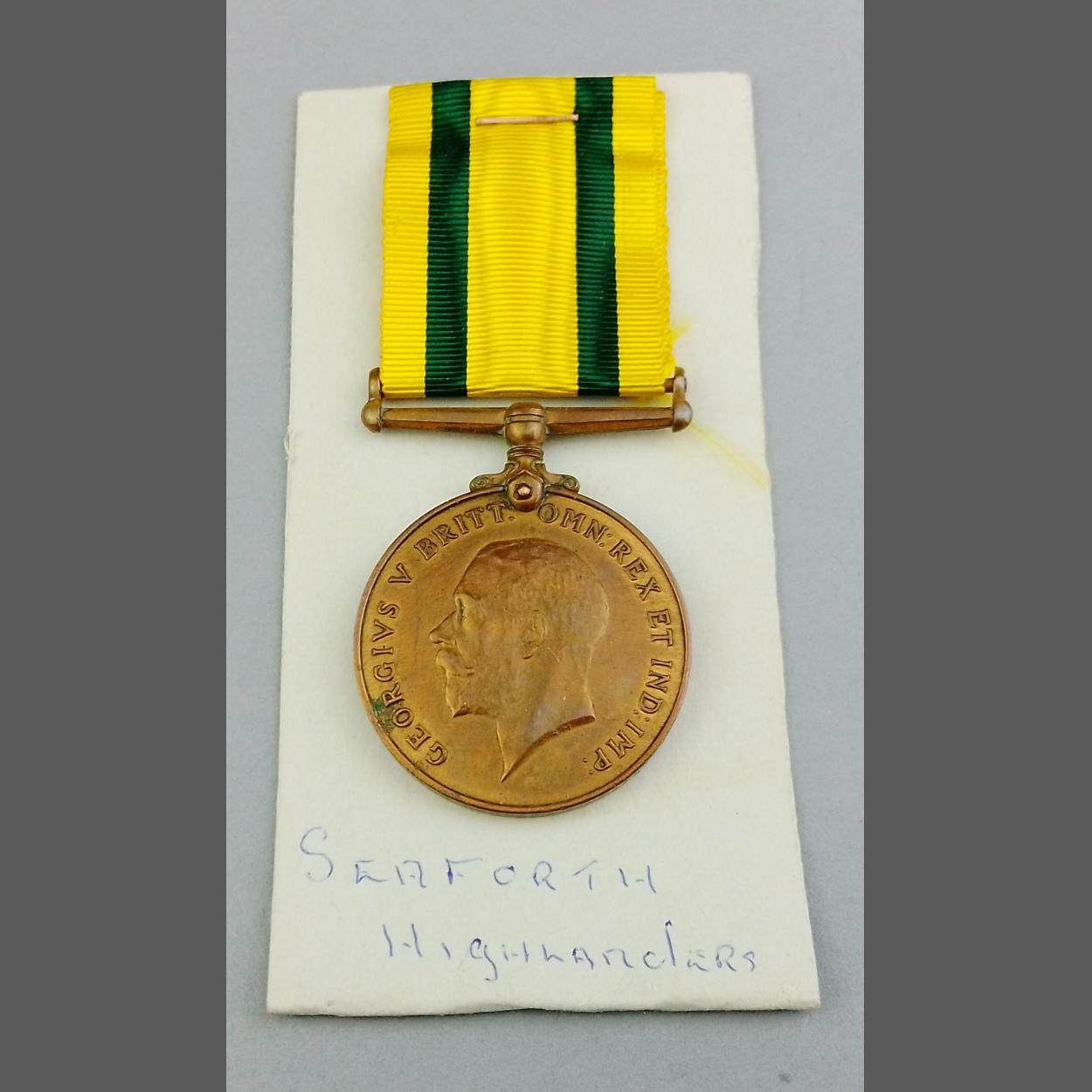 WWI Territorial War Medal awarded to 1524 Pte. G. Thomson SEAFORTH HIGHLANDERS with ribbon