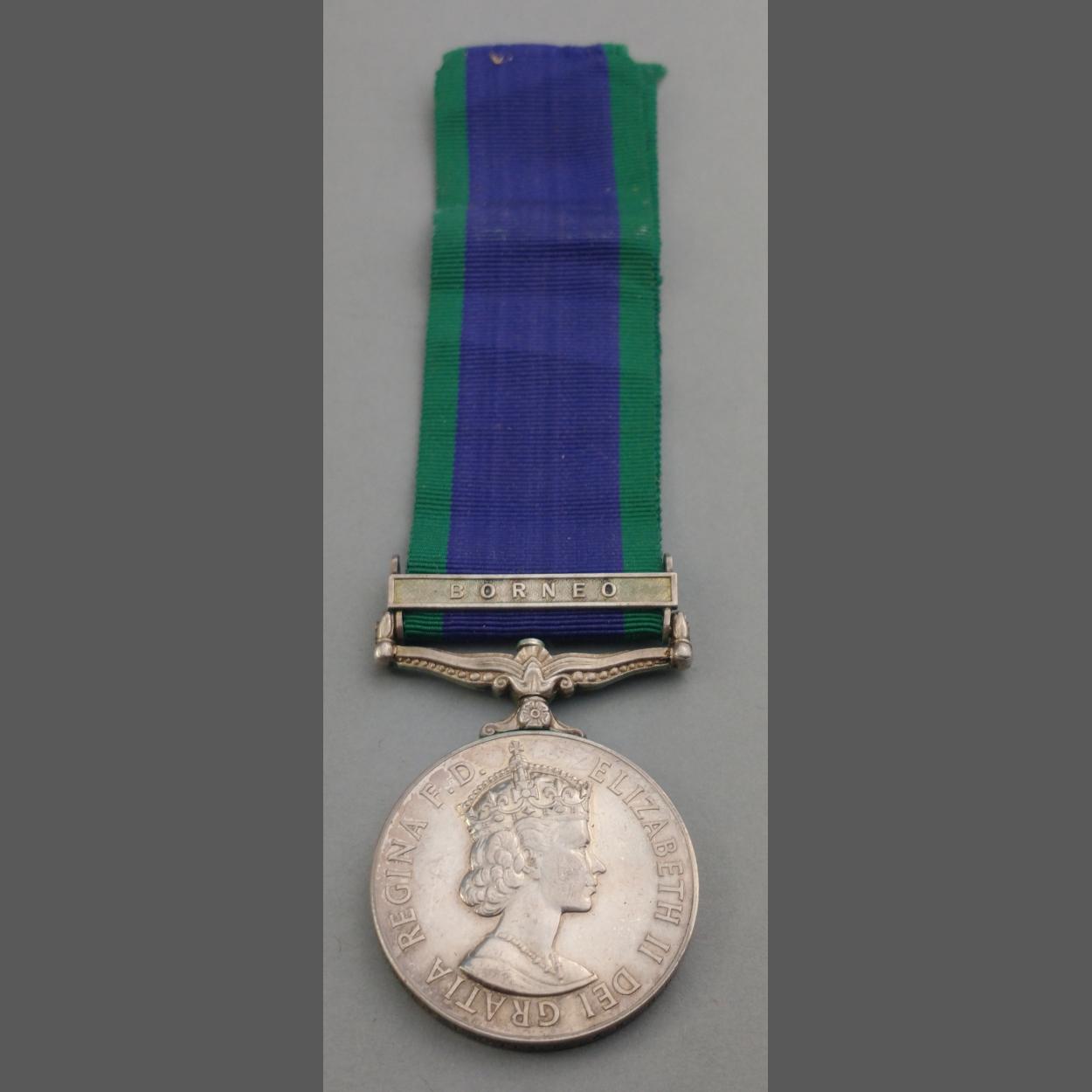 ELIZABETH II GSM General Service Medal with Borneo clasp awarded to J966148 T. Wallace A. B. ROYAL NAVY