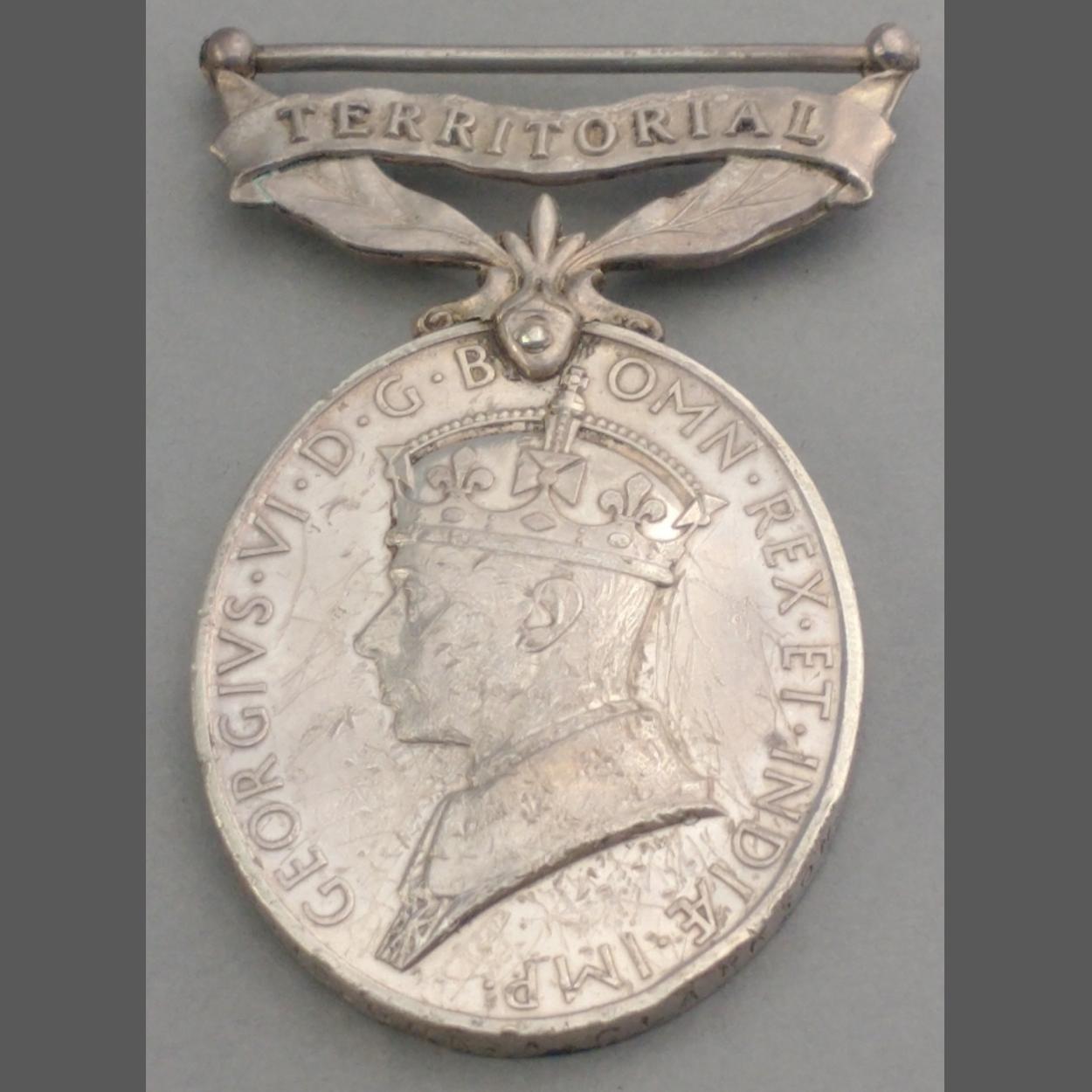 GEORGE VI Territorial Efficiency Medal ROYAL ARTILLERY awarded to 761115 Gnr. A. Clarkson. Medal with wear and edge damage