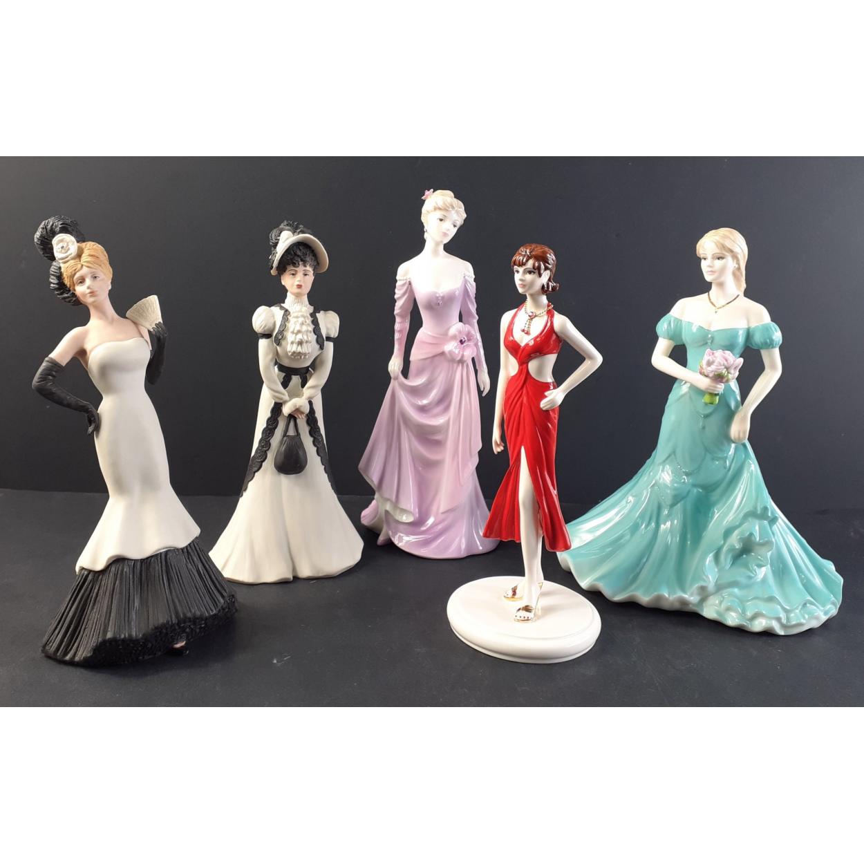 Collection of 5 adult lady fashion figures to include COALPORT, WEDGWOOD