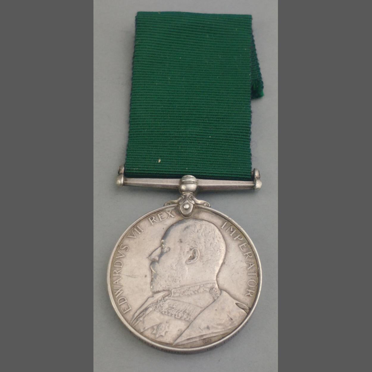 EDWARD VII era LONG SERVICE VOLUNTEER medal awarded to 2030 Sgt. P. Chalmers 1st FORFAR R.G.A.V.