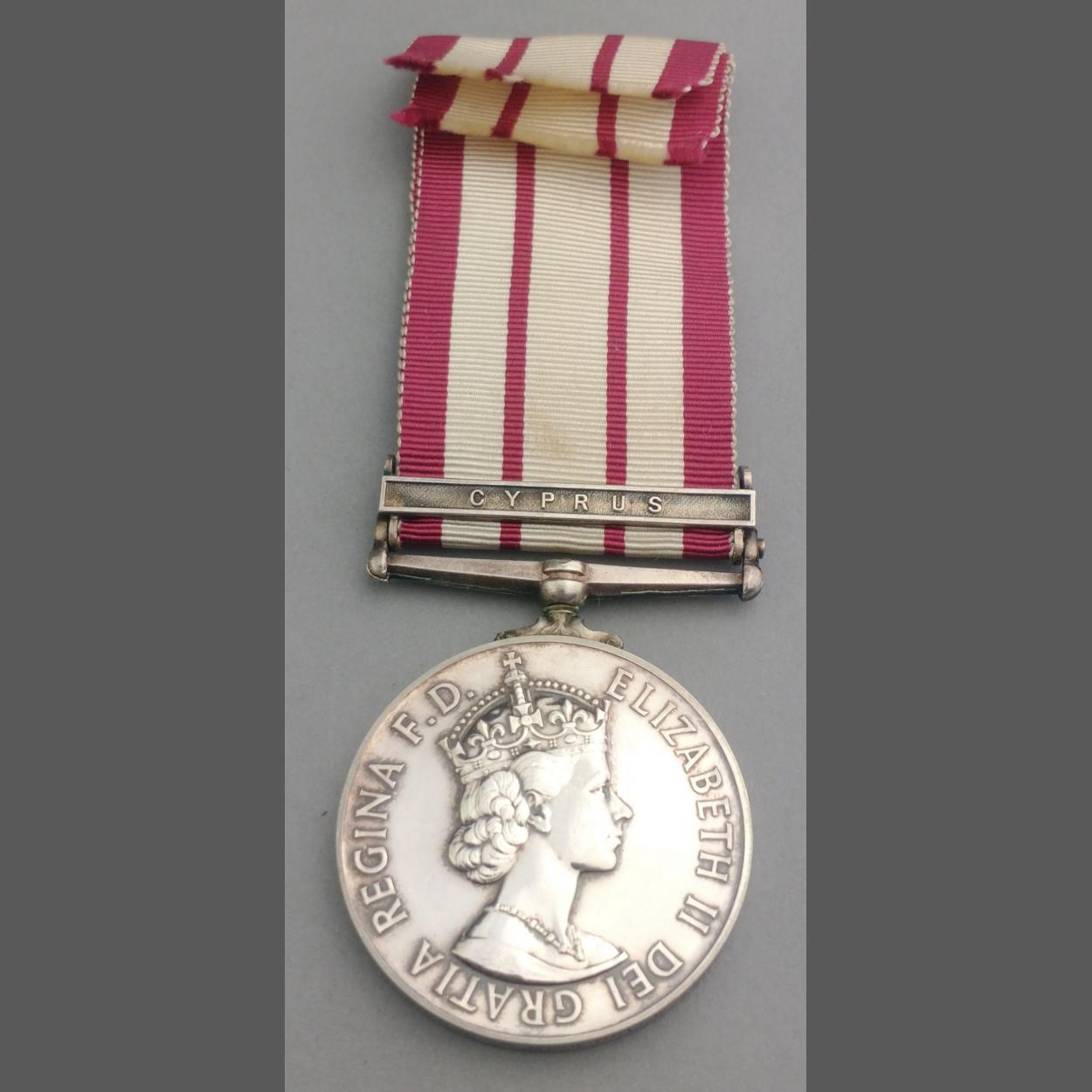 ELIZABETH II GSM Naval General Service Medal with Cyprus clasp awarded to Rm. 132721 J. McGouldrick Mne. ROYAL MARINE