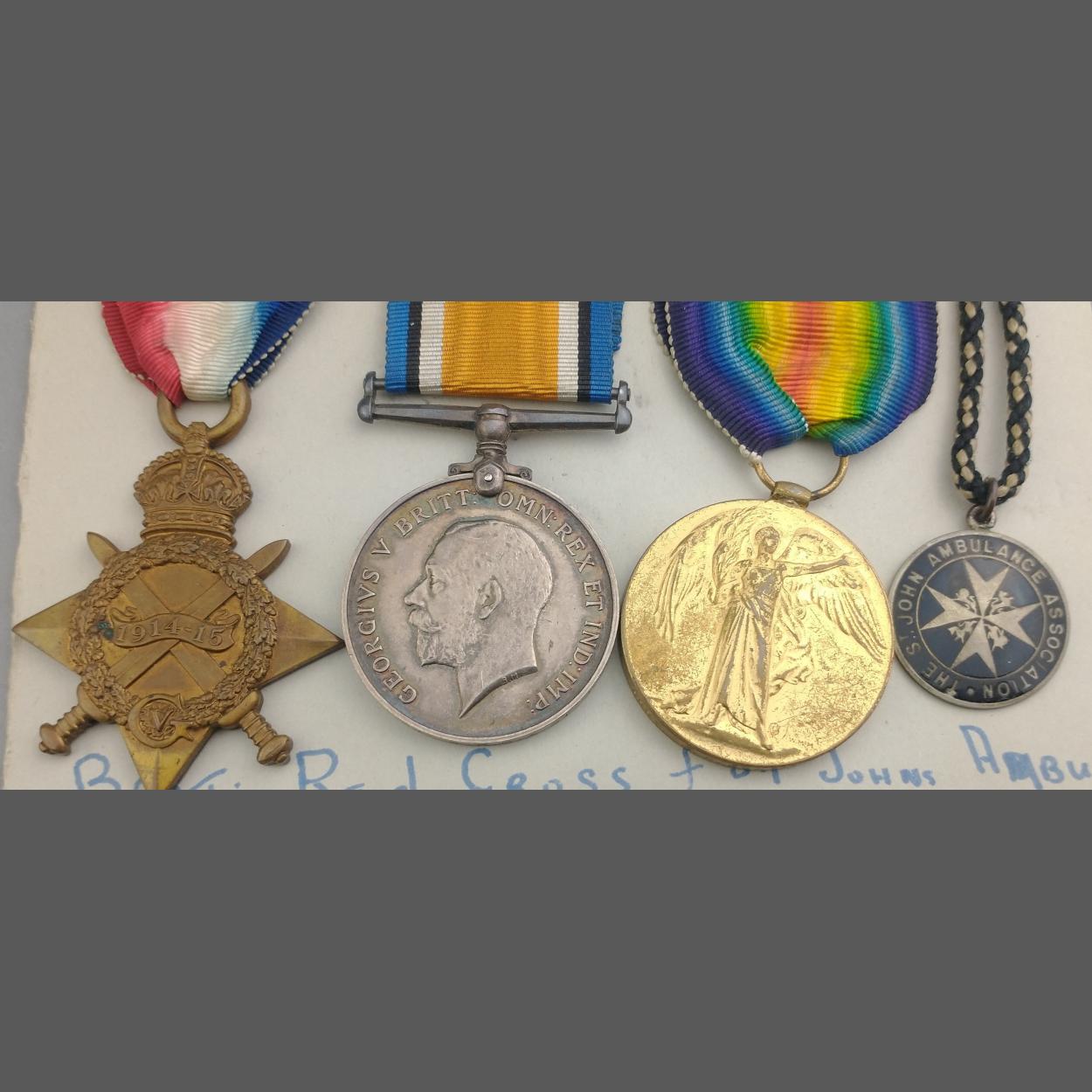 WWI medal trio BRITISH RED CROSS & ST. JOHN'S AMBULANCE awarded to K. A. Parry, comprising 1914-15 Star, British War Medal, Victory Medal and a St. John's Ambulance tag named 78 F.N. Parry