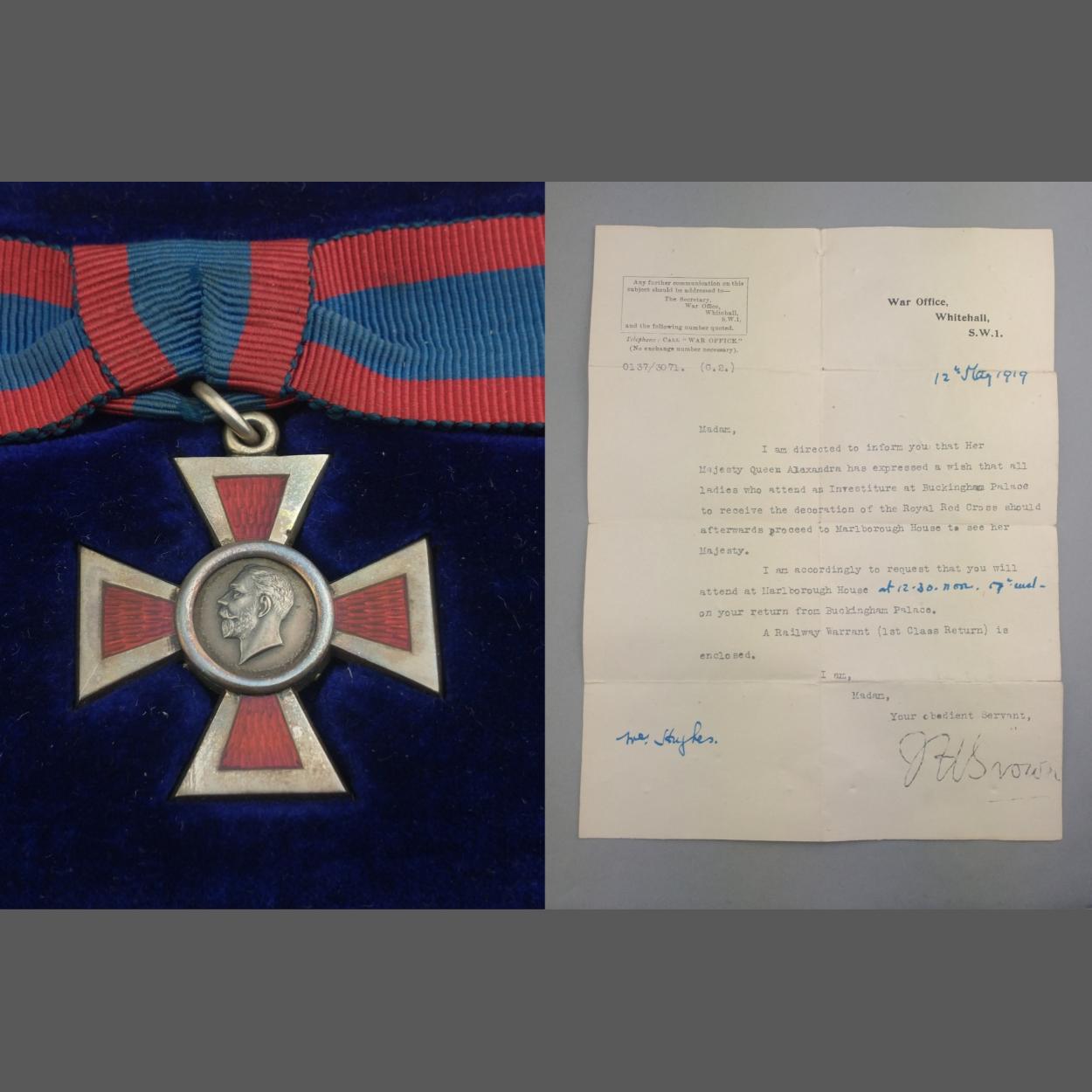 GEORGE V - GARRARD & CO RRC ROYAL RED CROSS 2nd CLASS cased medal with 1919 dated invitation to Buckingham Palace letter, sadly unnamed