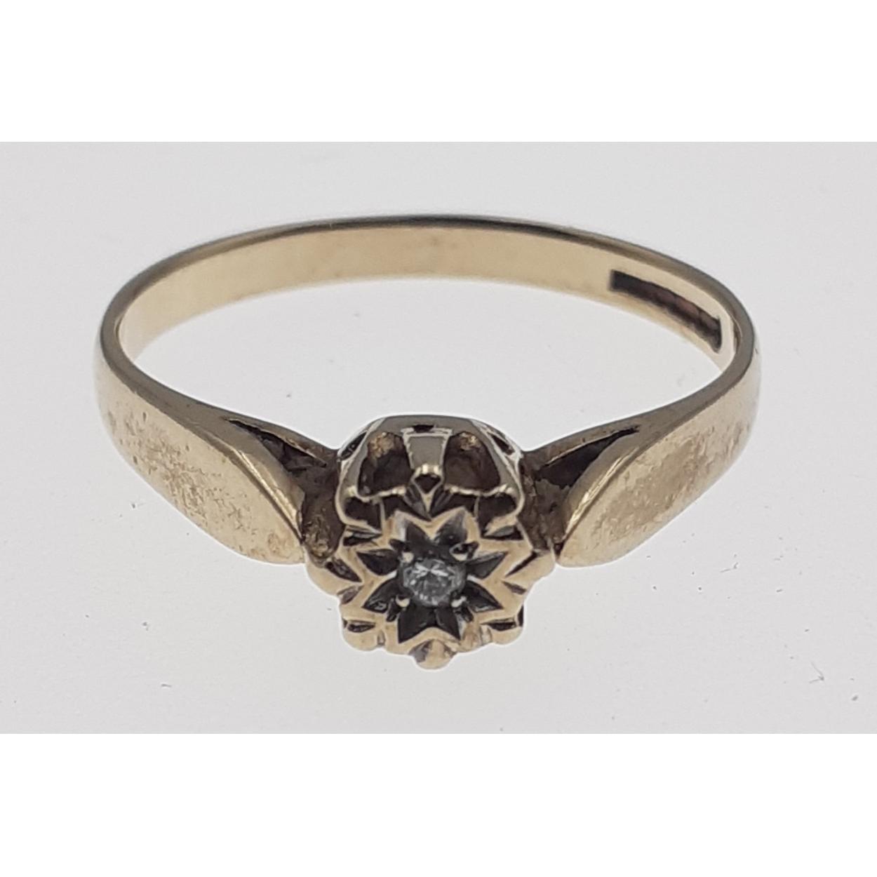 A 9ct fully hallmarked gold diamond ring size M with small central illusion cut diamond, gross weight 1.6g approx