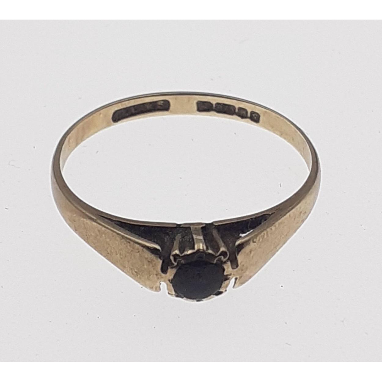 A 375 stamped gold ring with small inset black centre stone, size L, gross weight 1.05g approx