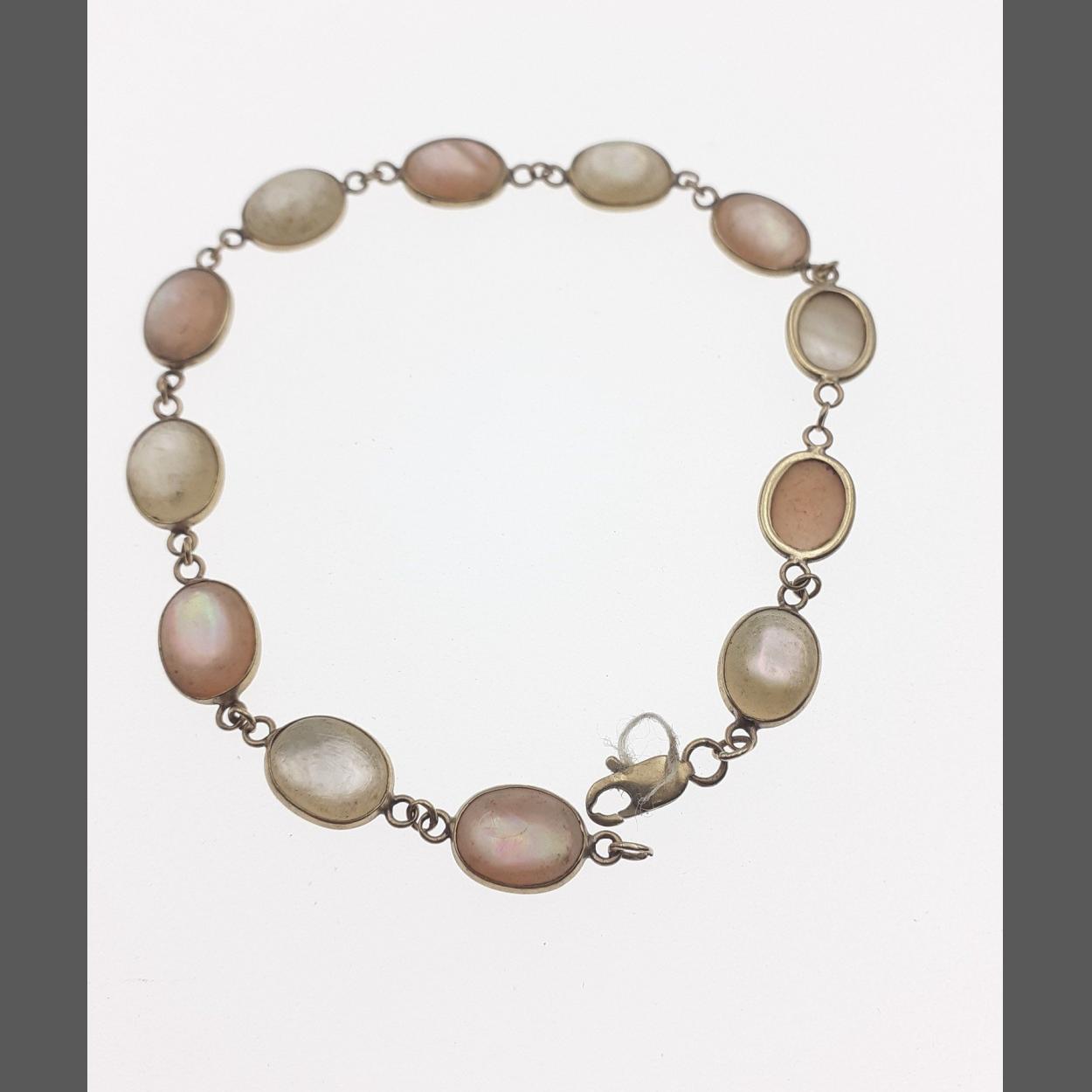 A 375 stamped bracelet set with mother of pearl, 19cm length, gross weight 4.15g approx