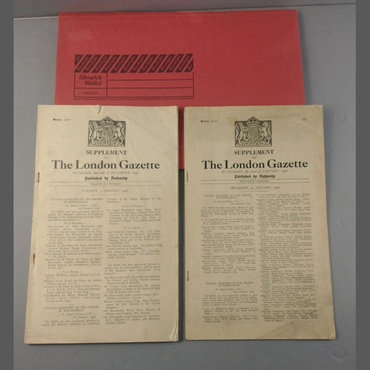 Supplements to the LONDON GAZETTE dated Friday 28th December 1945 and Tuesday 22nd January 1946