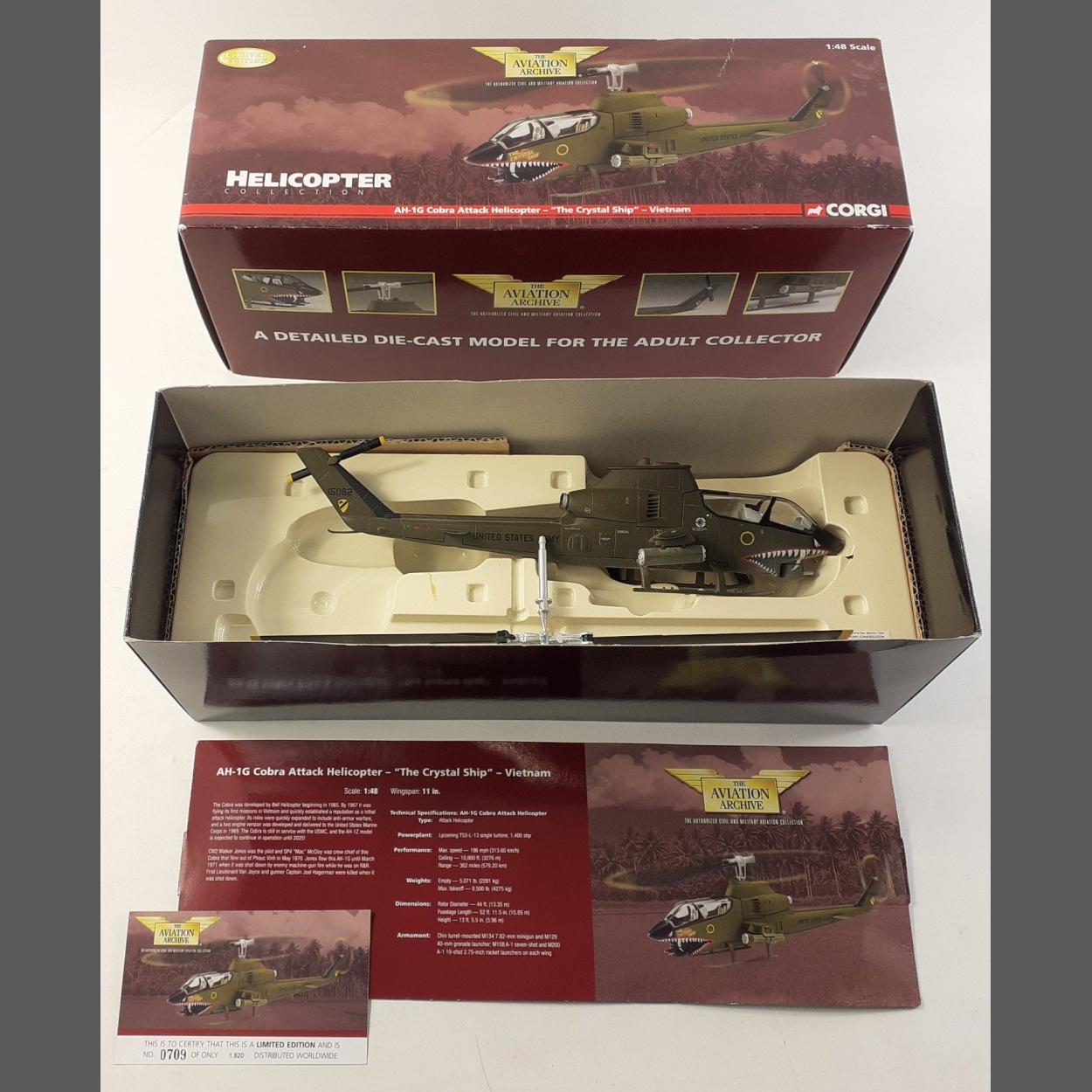 CORGI - THE AVIATION ARCHIVE limited edition Helicopter Collection - AH-1G Cobra Attack Helicopter - "The Crystal Ship" - Vietnam, US51205, 1:48 scale. Boxed in excellent condition