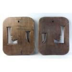 Two carved Nigerian wooden wall plaques. Dimensions: 37cm height x 30cm width approx.