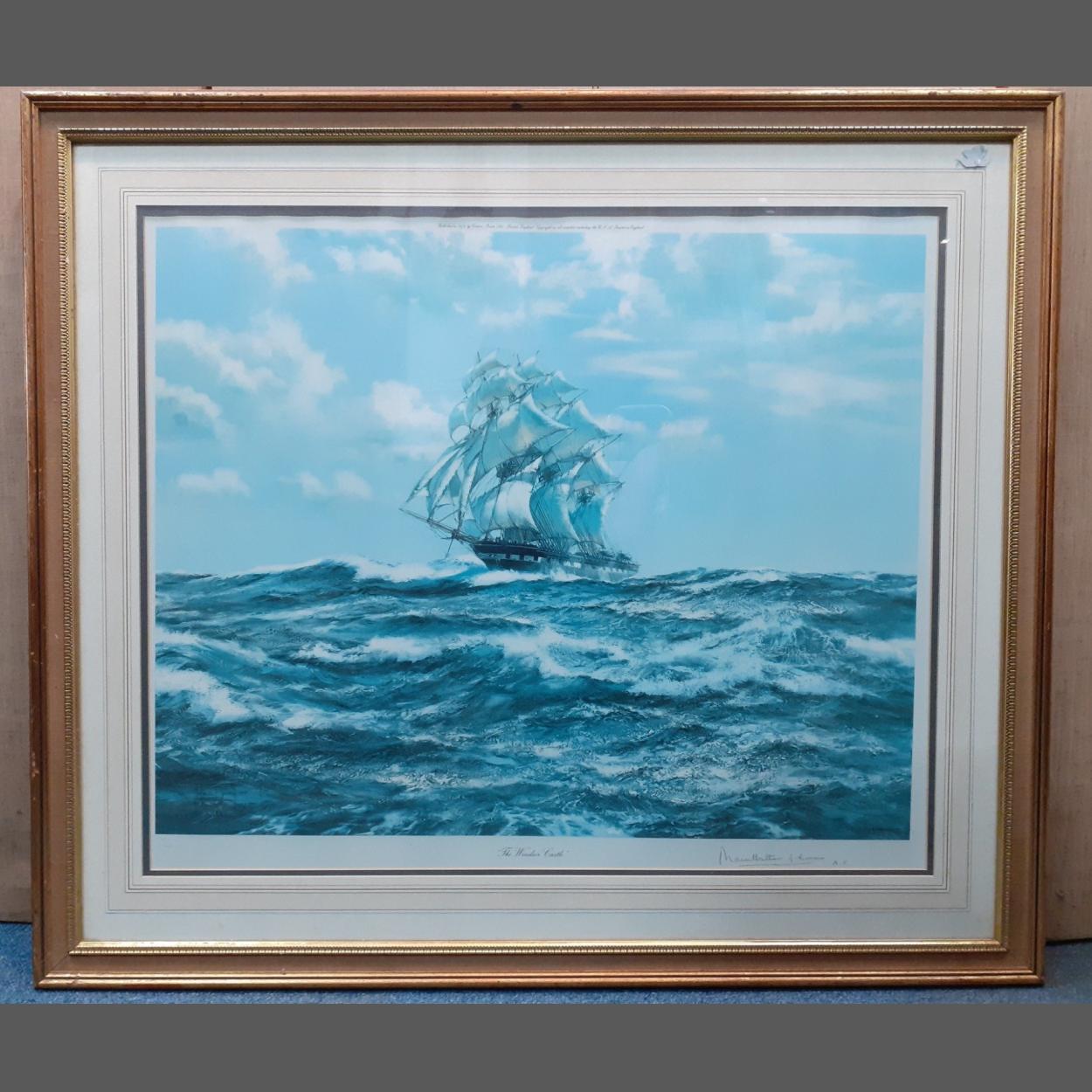 A maritime print called "The Windsor Castle", limited UK edition 140/200, by MONTAGUE DAWSON 102cm x 90cm, visible work 76cm x 61cm approx. Published in 1974 by Venture Prints Ltd of Bristol, England