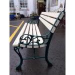 A lovely garden bench with green painted wrought iron ends, recently repainted and ready for the spring. Width 127cm approx, height at rear 67cm, depth 50cm approx.