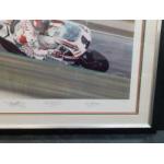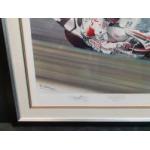 Of HONDA interest - limited edition 240/350 print title "Foggy- Fast and Furious Fogarty Celebrates his First Win on the Honda RC45 at Hockingham 1996 by RAY GOLDSBURGH. Signed in pencil by both driver and artist. Frame 79 x 64cm approx