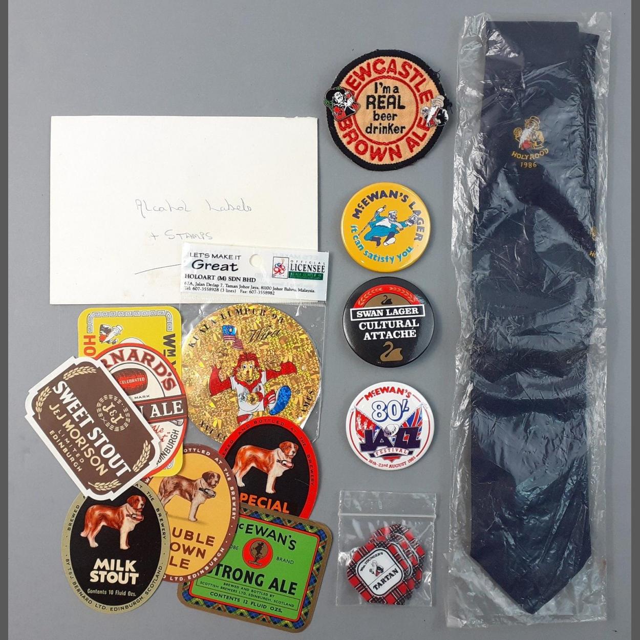 A small collection of WM YOUNGER collectables to include 1986 Holyrood tie, darts flights, badges and others