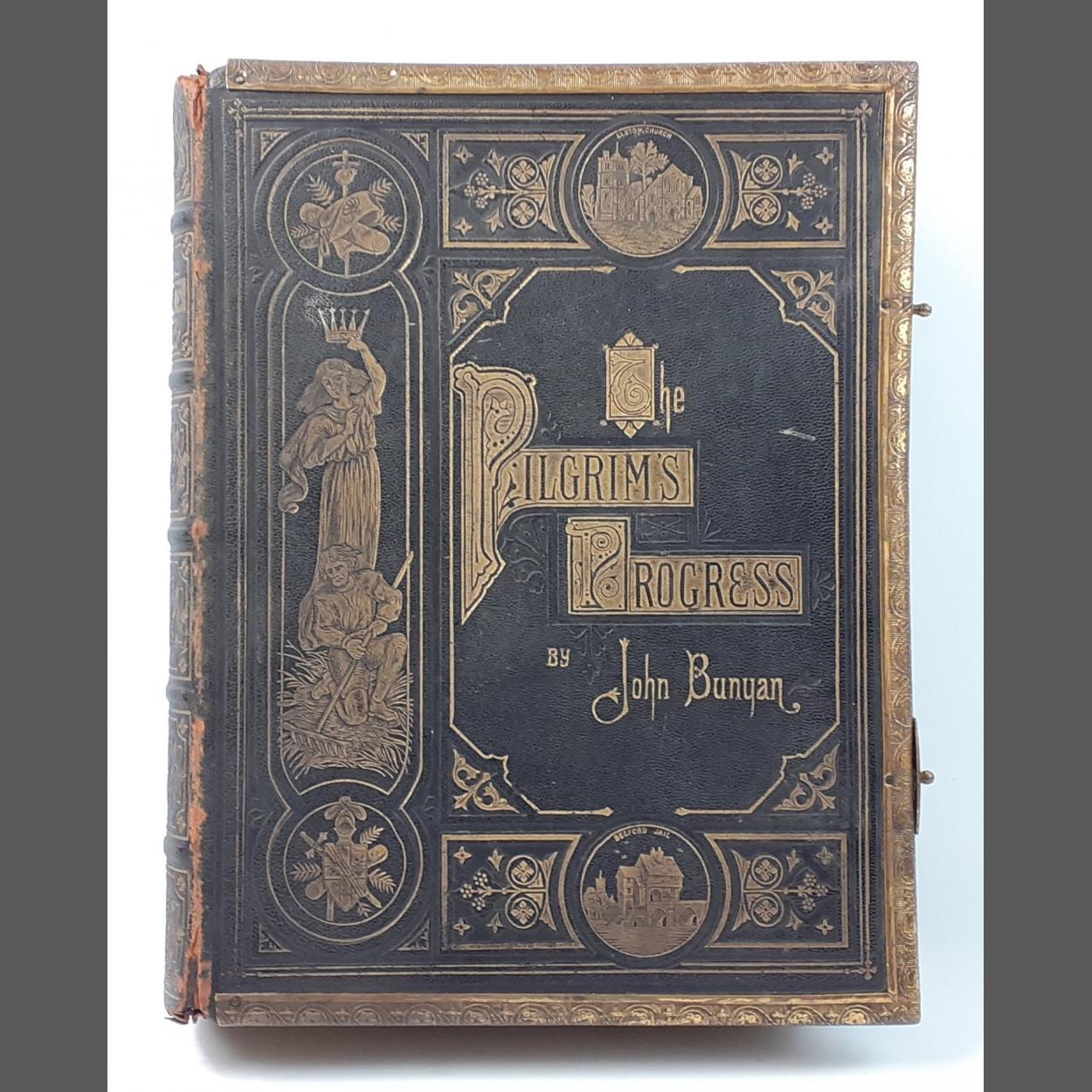 Large and impressive mid-Victorian brass bound copy of THE PILGRIM'S PROGRESS by John Bunyan. Published by Adam and Company. Substantial volume 32 x 25cm. Missing one clasp and some light internal ware.