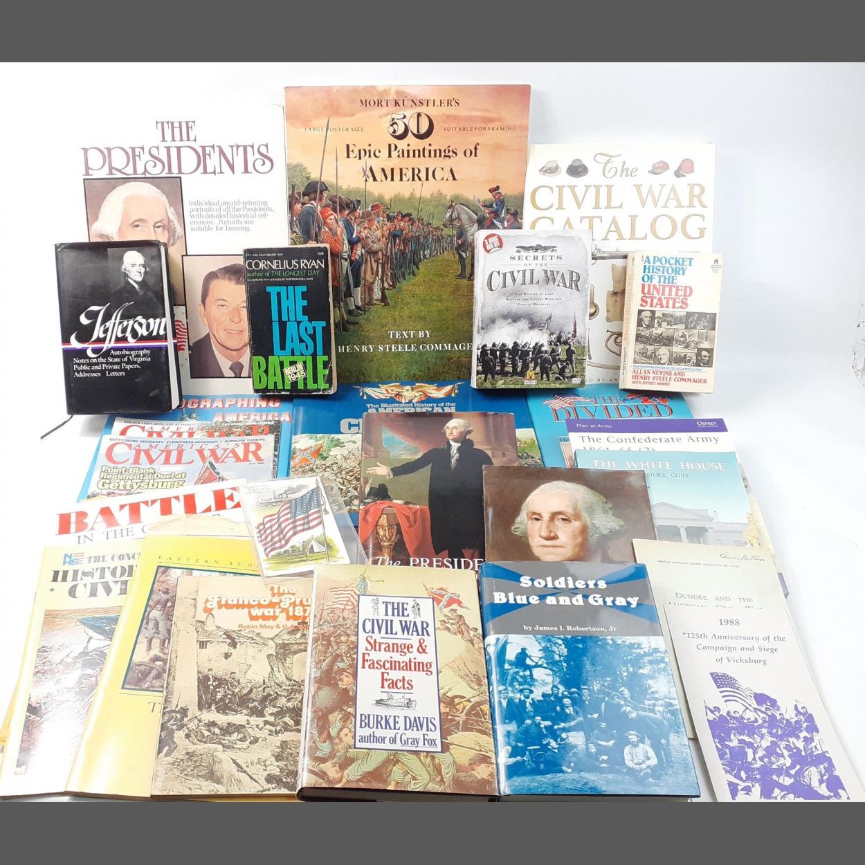 A USA/American Civil War lot to include Epic Paintings of America, Story of the Civil War, Story of the White House, Battle of Shiloh, Books on the Presidents, boxed DVD set of the Civil War, biography of Jefferson and much, much more