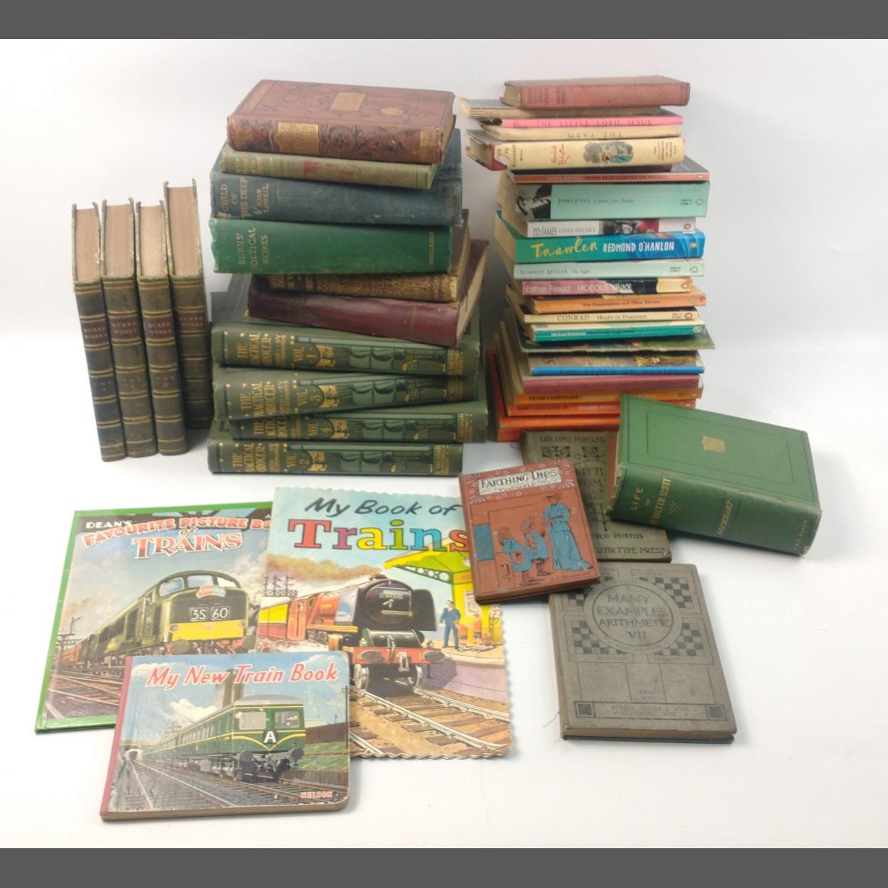 A box of books to include 4 volumes of THE PRACTICAL GROCER, 4 volumes of THE WORKS OF BURNS, plus many more
