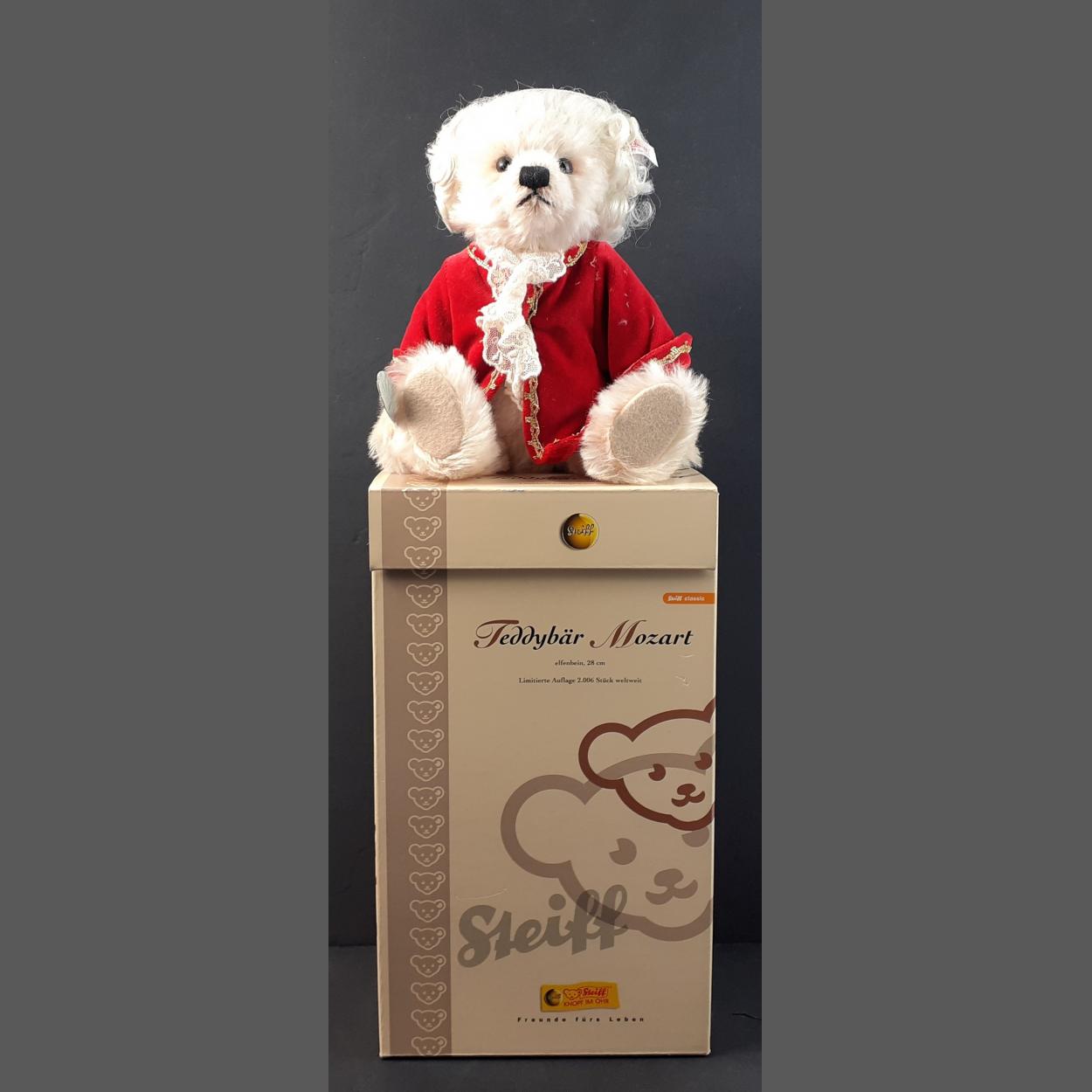 A boxed STEIFF Mozart musical teddy bear, number 28/2006, which plays Eine Kleine Nachtmusik, stands 28cm high. Comes with certificate.