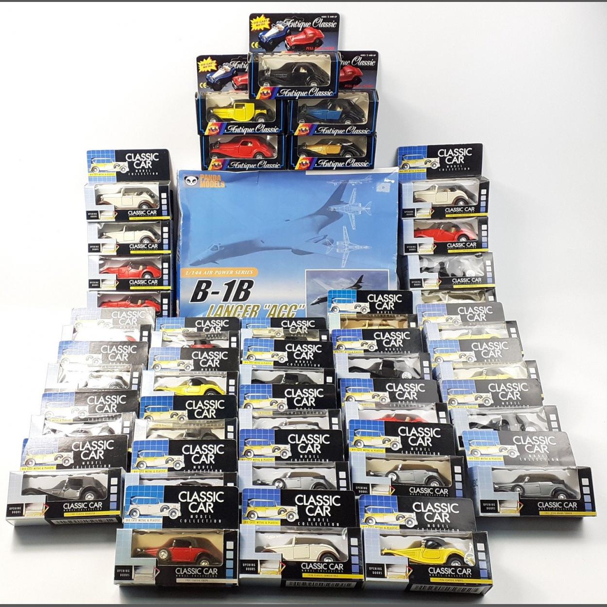 A large quantity of boxed diecast model CLASSIC CARS - 36 cars in total - also to include a boxed B-1B Lancer ACC model by PANDA