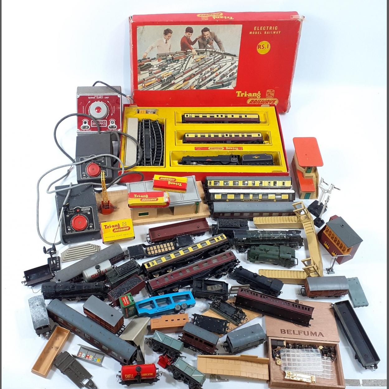 Choo, choo, choo a super lot containing a boxed Tri-Ang RS1 model railway, box with wear but good condition comes with other metal locomotive in well-run condition, carriages, layout pieces etc