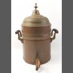A vintage brass tea urn with tap, stands 40cm approx to the finial