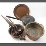 A selection of metalware to include a large cast iron pot 26cm approx, brass and other items