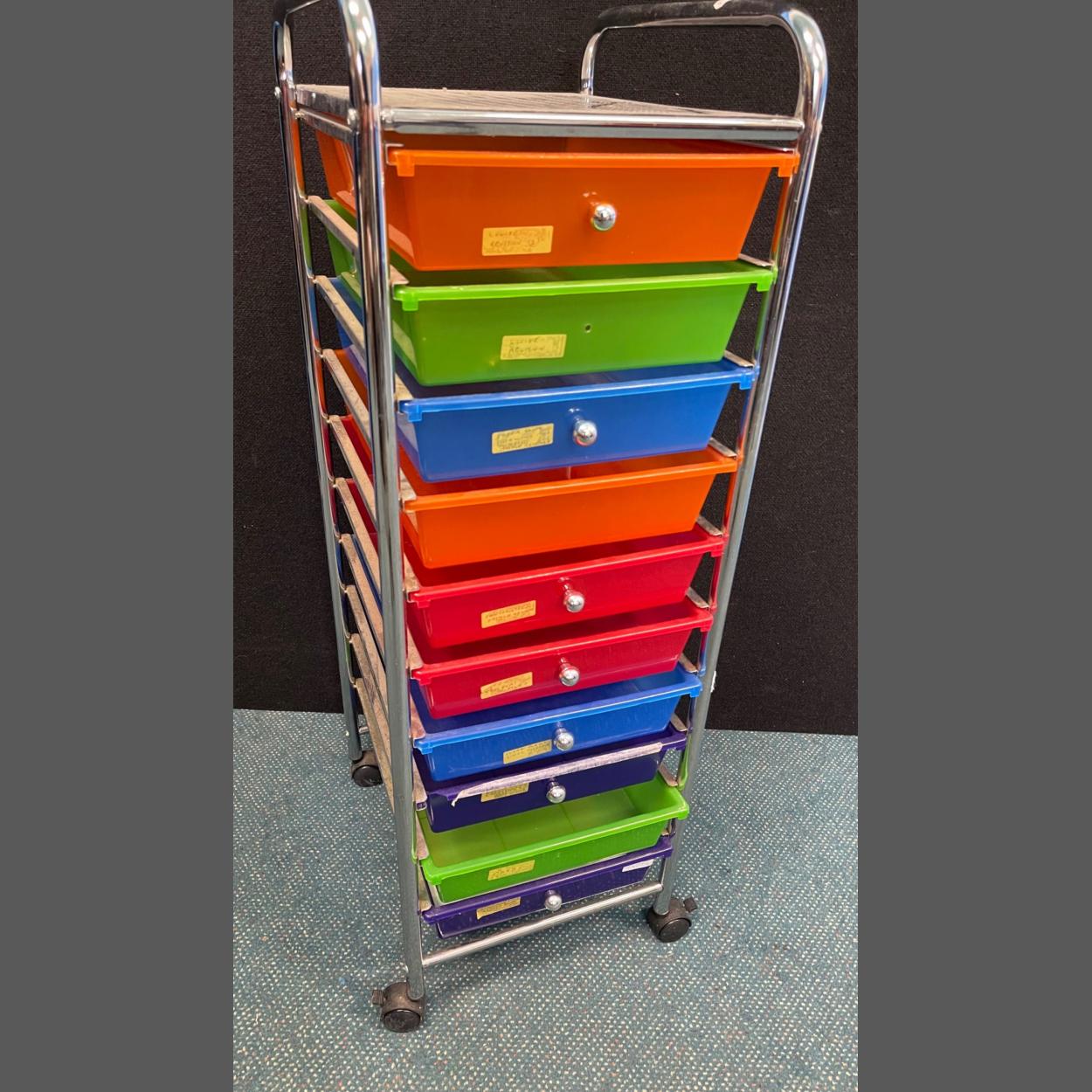 A COLOURFUL10 tray mobile storage unit on castors 1m height approx - trays to hold A4 size