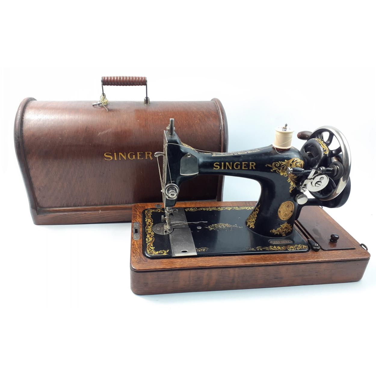 Beautiful, VINTAGE, boxed Singer sewing machine in lovely working order. Numbered F719831 (made in Clydebank 1910). The gilt lettering is unrubbed. Box in lovely condition with key.