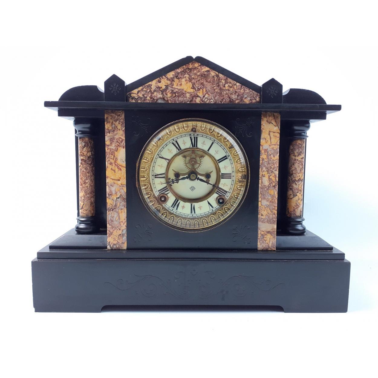 A very attractive heavy slate mantel clock, movement stamped AMSOMIA of New York,