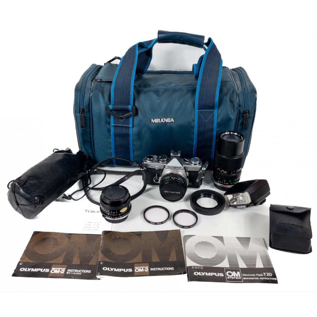SNAP AWAY!! A camera bundle to include an OLYMPUS OM-2N camera with an OLYMPUS OM-System Zuiko Auto-S 50mm 1:1.8 lens with a flash light, plus an OLYMPUS OM-SYSTEM ZUIKO AUTO-ZOOM 75-150mm 1:4 (491209) lens, plus a TOKINA 24mm 1:2.8 lens all within a padded camera bag, all lenses show signs of fungus which can be removed
