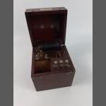 A Victorian high frequency electrotherapy device, battery operated, in a purpose made wooden box (13x15x13cm), made by Archibald Young & Son, Surgical Instrument Makers of Edinburgh