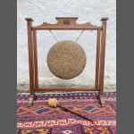 IMPRESSIVE ! A VICTORIAN large brass and hand carved dinner gong with original striker(striker leather will need some repair) - dimensions - width 74cm x 79cm approx