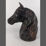 Heredities cast sculpture on base of a Girl Grooming Pony, Lovely detailed and finished sculpture with no damage, signed P Parsons. Measures 16 cms high 13 cms deep 20 cms long. Includes two other equine statues